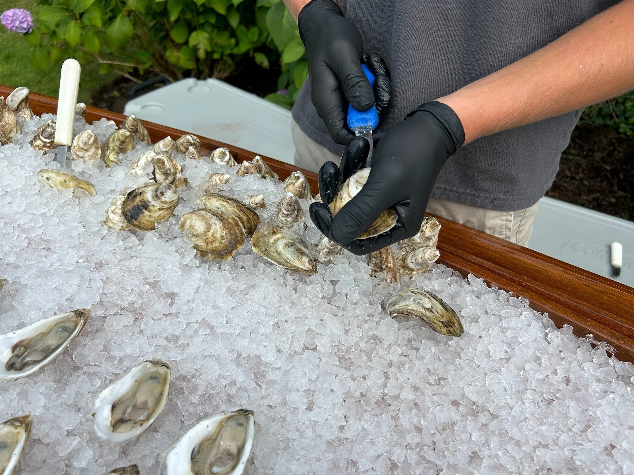 All of our shuckers also work on Fifth Bend Oyster Farm and are ready to talk all things oysters while they shuck!